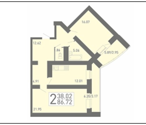 Жилая: 38.02 м²