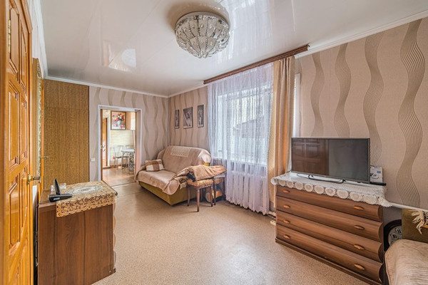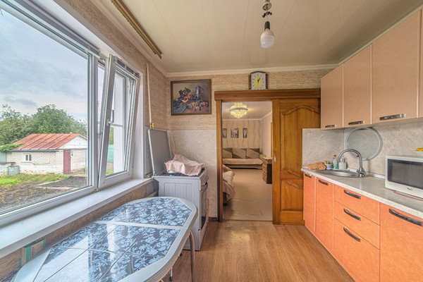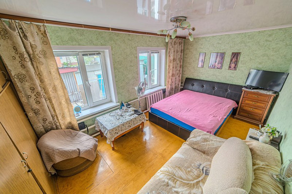 Арт. 113452657 Продается дом (в районе Маяка), по адресу 1-й Орджоникидзе проезд, д. 8.Основные характеристики:Бревенчатый дом обложенный кирпичом общей площадью 75,8 квадратных метров в хорошем жилом состоянии.2 изолированные комнаты 28,4 кв.м и 16,3 кв.м. Так же гостиная комната (проходная) 15,8 кв.м. Кухня 7 кв.м (остается кухонный гарнитур, плита, обеденный стол и стулья). Туалет в доме и во дворе. Так же имеется 2 этаж (чердак). На участке площадью 5 соток установлено: баня, теплица, 2 сарая (свет проведен). Огород ухоженный с насаждениями.Отопление – газовый котел. Вода холодная центральная, горячая- водонагреватель.Выгребная яма. Новый забор. Очень хорошие соседи. Дорога к дому полностью асфальтированная. До остановки общественного транспорта 5 минут ходьбы. До центра города на машине 7-10 минут. 1 взрослый собственник. Занижений нет, детский долей нет. Любой расчет.