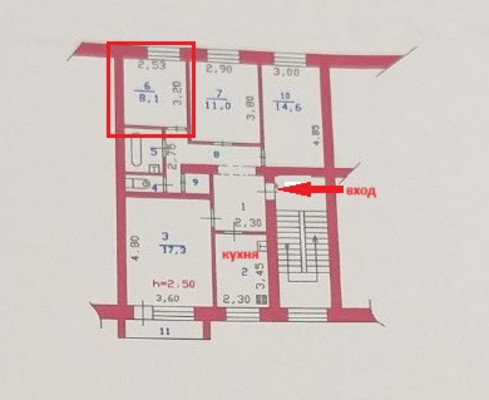 Комната в 4-к квартире 76 м² на 5 этаже 5 этажного дома , прямая продажа